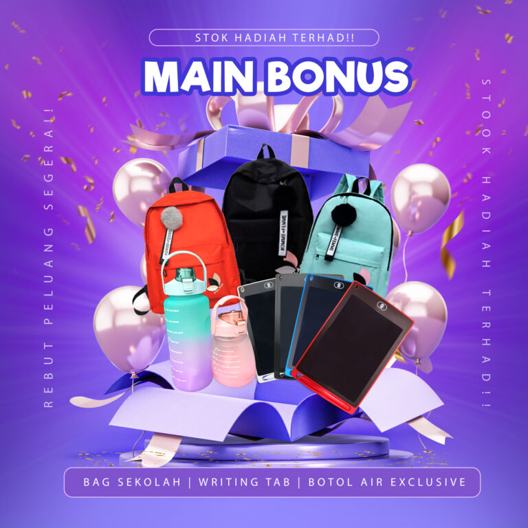 Bukan itu saja, anda juga akan dapat Beg Sekolah, Botol Air atau Writing Tablet yang bernilai RM59 secara percuma jika anda grab order terus sekarang.